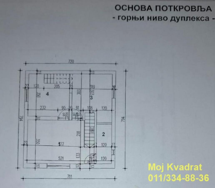 Uknjižen kao stan-dupleks 1/1 na 89m2. Stvarna merena ukupna kvadratura iznosi 100m2.